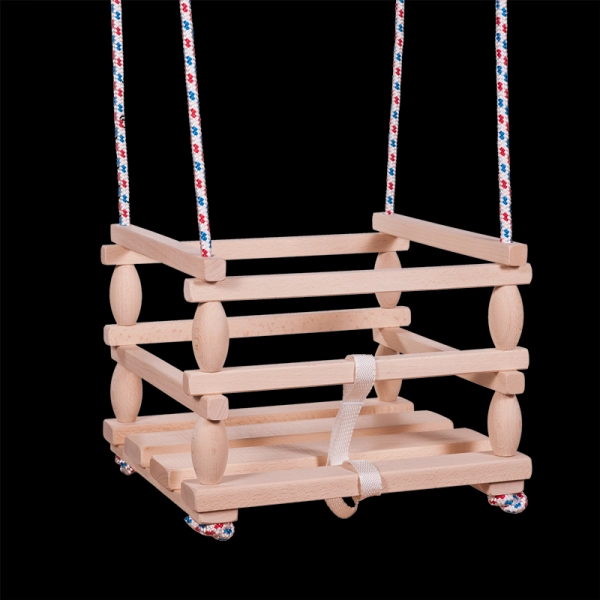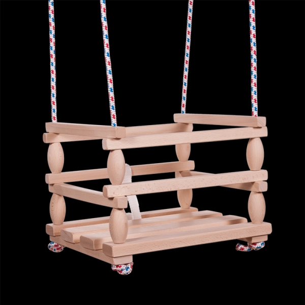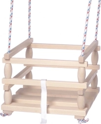 Este columpio de madera está diseñado especialmente para los niños más pequeños que ya pueden sentarse por sí solos. Gracias a su construcción robusta y a la barra de seguridad, ofrece un balanceo seguro y cómodo. El columpio puede utilizarse tanto en casa como en exteriores.