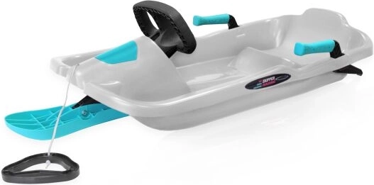 Skipper Titan es un trineo dirigible moderno diseñado para una conducción rápida y segura sobre la nieve. La robusta estructura de plástico con base de un solo esquí ofrece gran estabilidad y maniobrabilidad, mientras que el volante ergonómico permite giros fluidos incluso en terrenos variables.