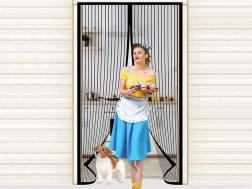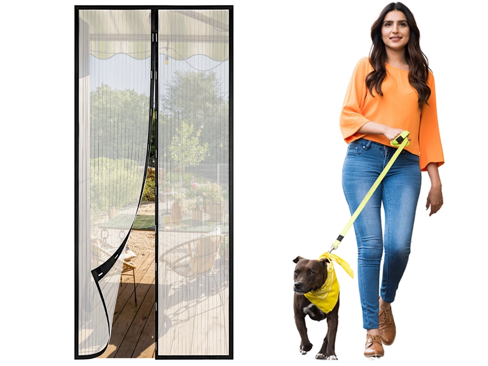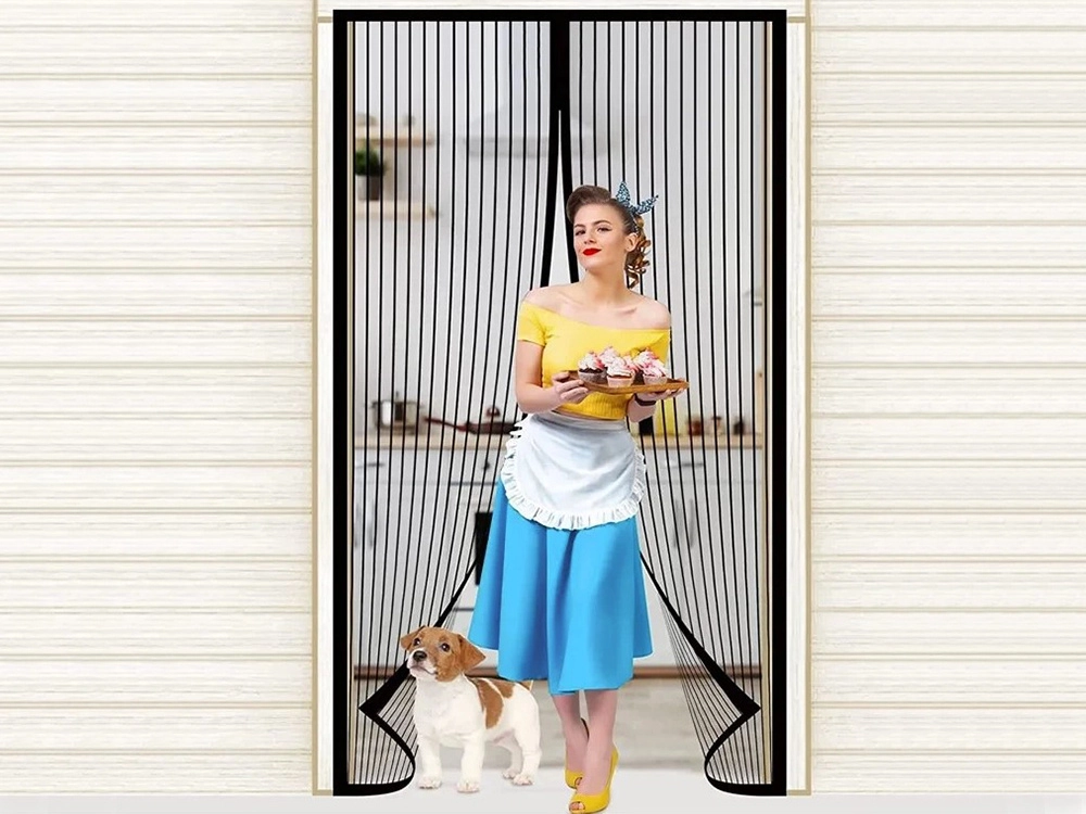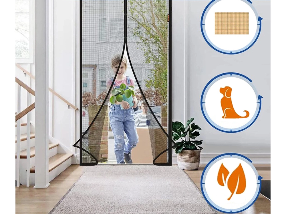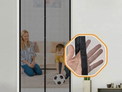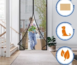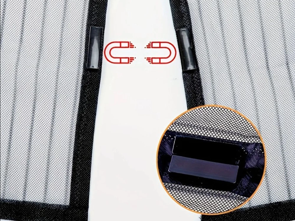 Montaje rapidísimo y uso cómodo – la mosquitera se instala con tiras de velcro, por lo que la montarás sin herramientas. Las piezas centrales se cierran automáticamente con imanes, lo que permite un paso cómodo al balcón o la terraza incluso con las manos ocupadas.