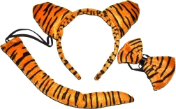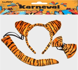Con este divertido set serás el centro de atención en cualquier fiesta. La diadema ligera y cómoda con orejitas, la pajarita con estilo y la cola crean al instante un tierno disfraz de tigre que combina perfectamente con cualquier ropa.