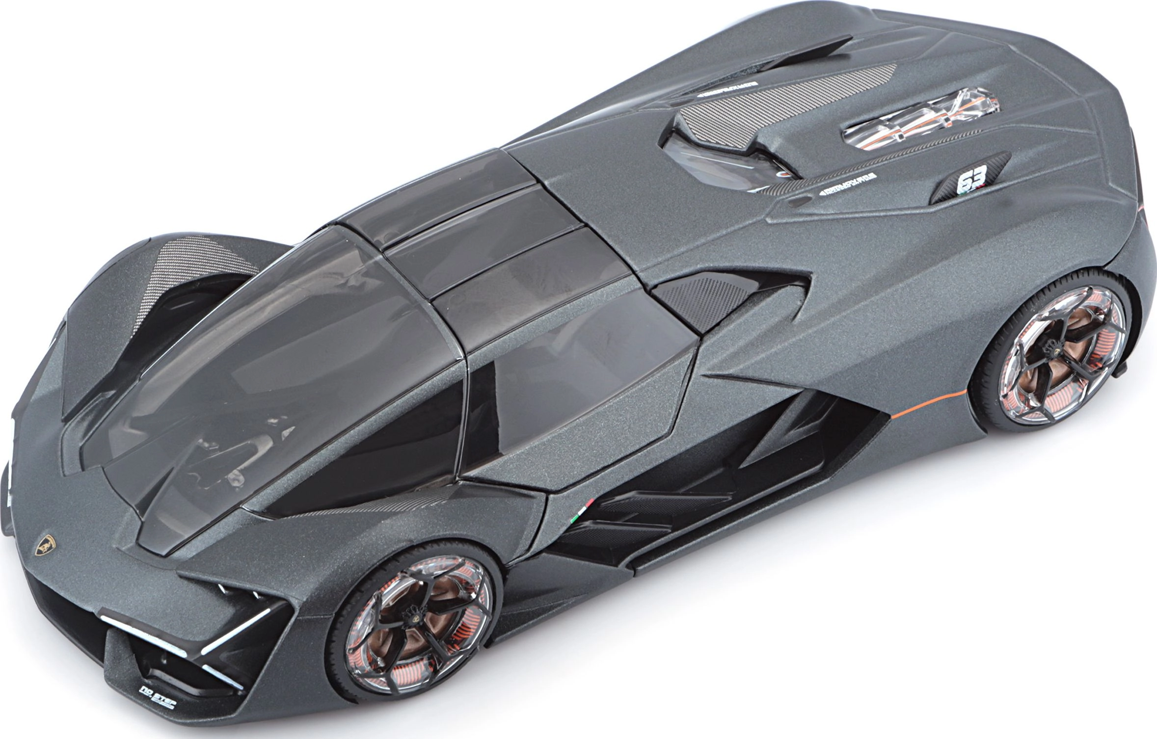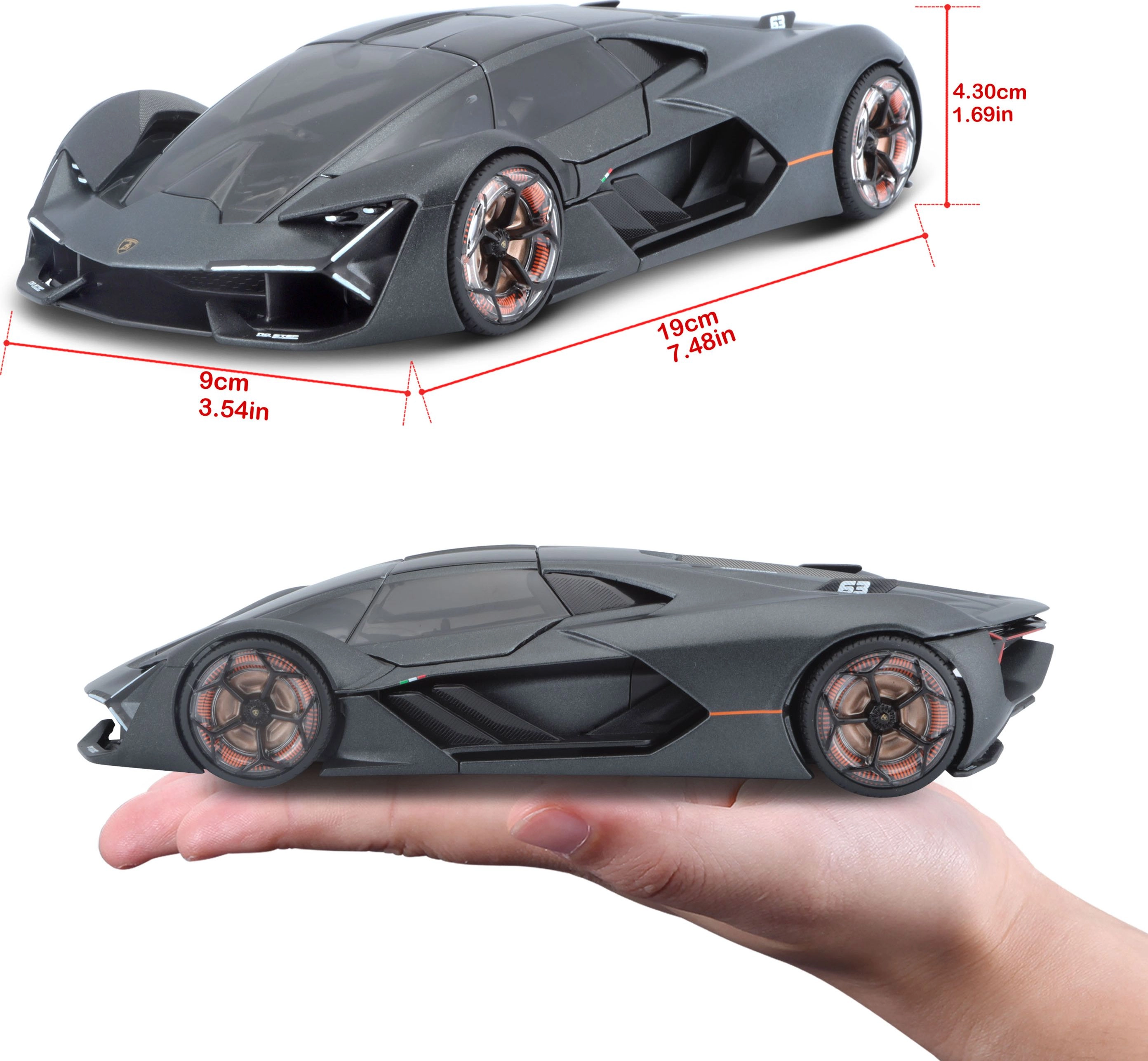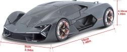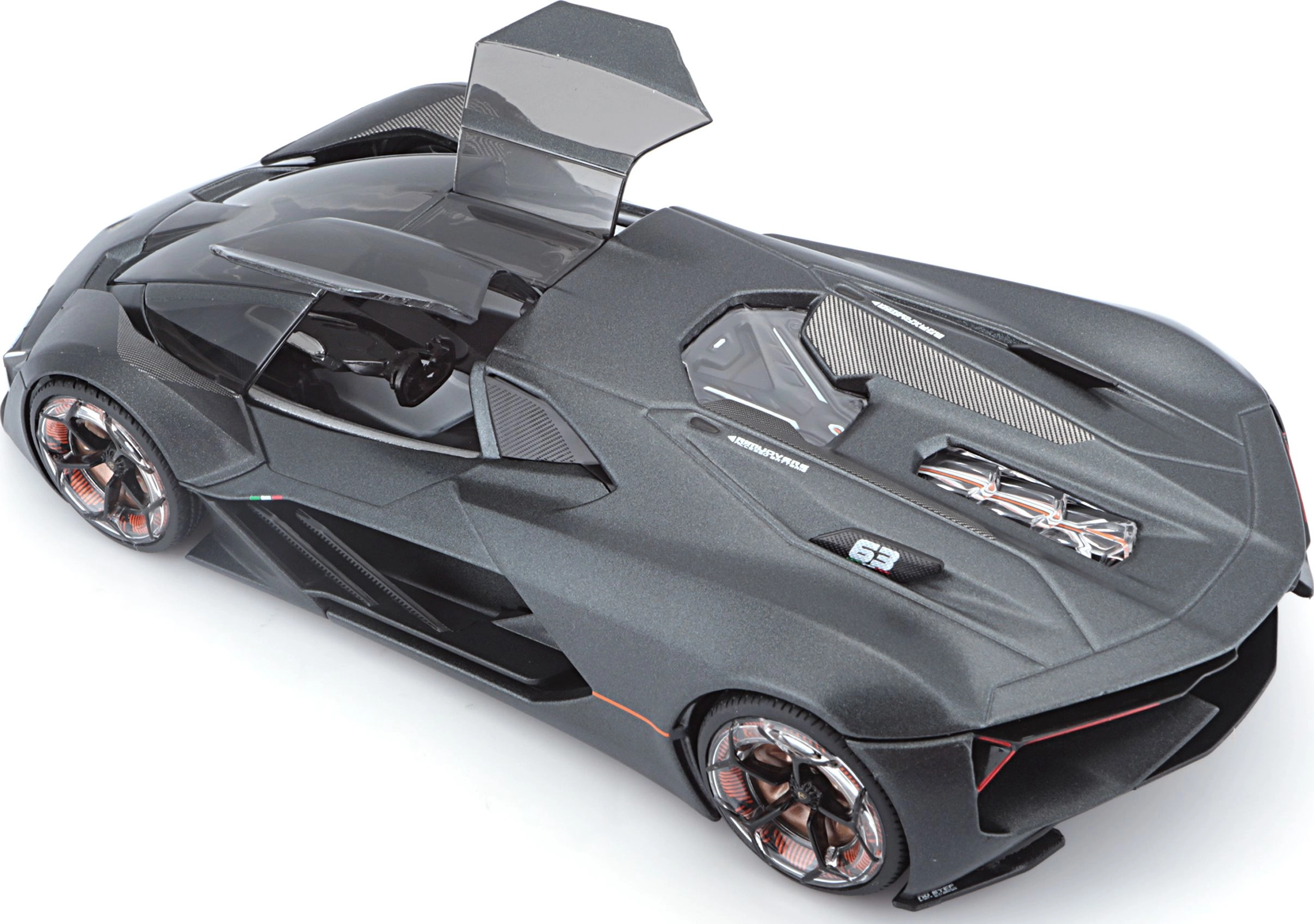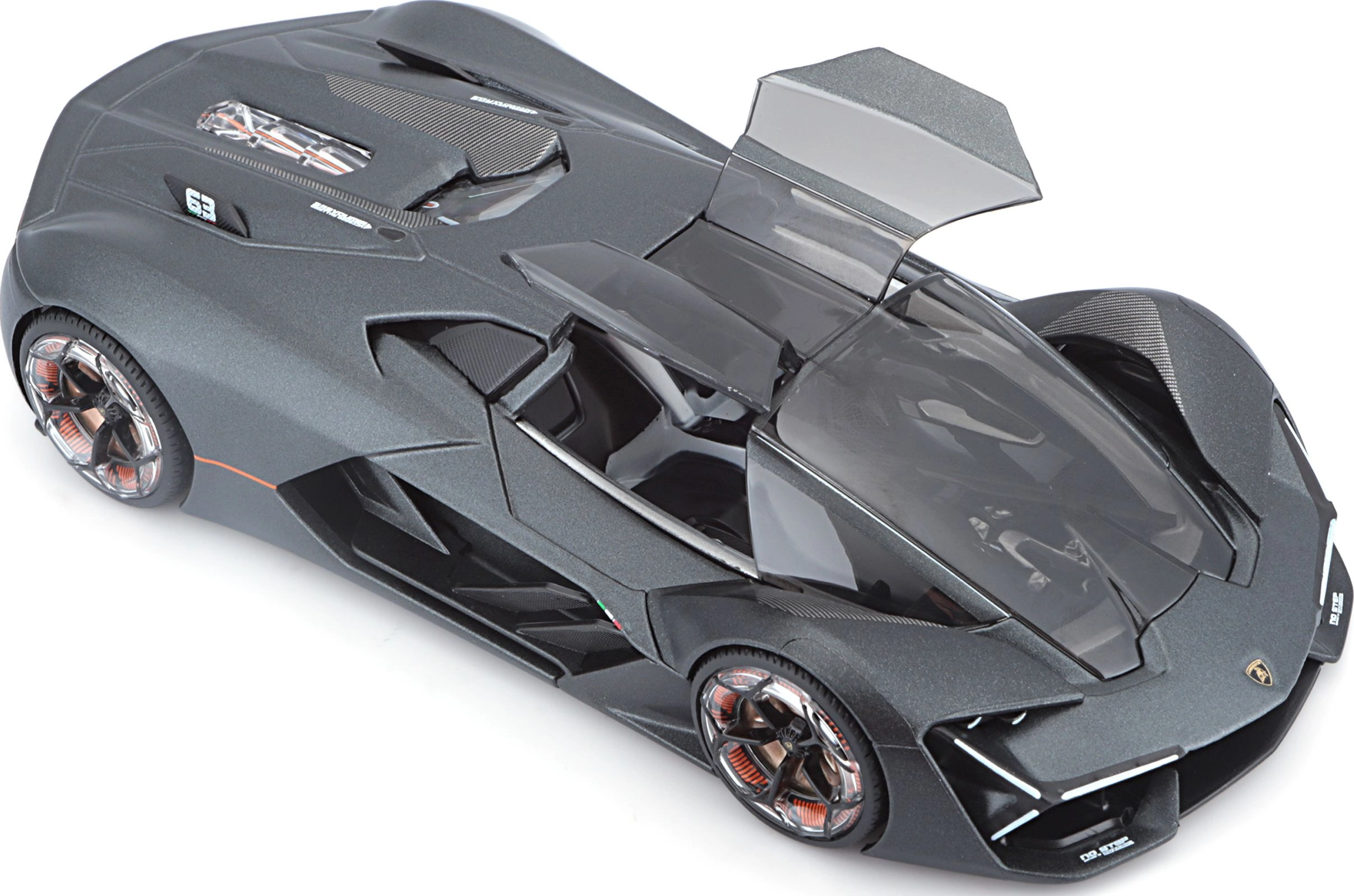 El coche de metal Bburago 1:24 es una reproducción exacta del Lamborghini Terzo Millenio en un elegante color gris, que encantará a cualquier coleccionista y fanático de los autos deportivos.