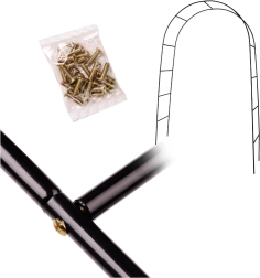 La pérgola metálica con una altura de 240 cm es ideal para crear un arco floral en el jardín, la terraza o el patio. Su forma minimalista y el elegante acabado en negro combinan fácilmente con composiciones modernas y clásicas. El marco de hierro con barras de 1,3 cm de diámetro es ligero pero lo suficientemente robusto para guiar con seguridad las plantas trepadoras.