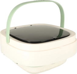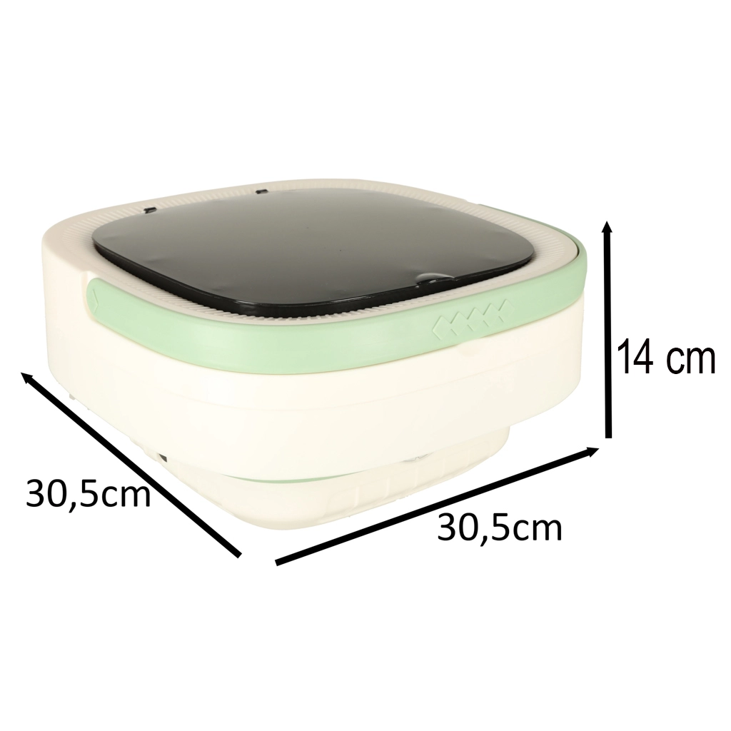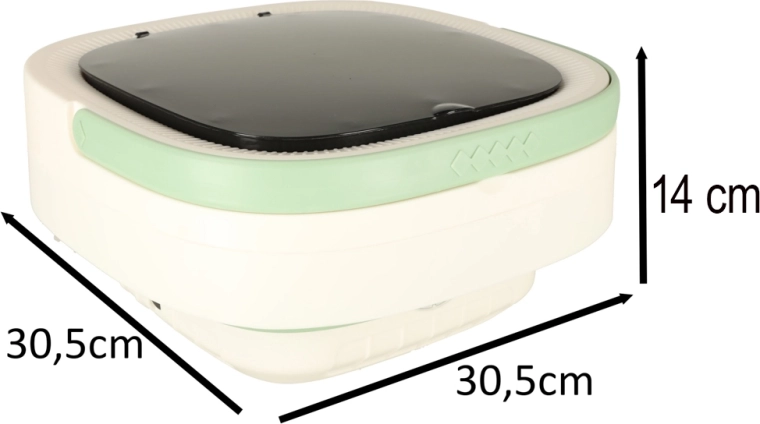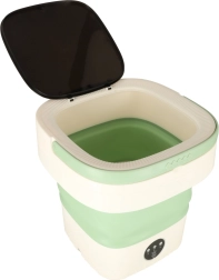 Con esta lavadora portátil podrás lavar camisetas, ropa interior o ropa infantil en cualquier lugar: solo necesitas agua y alimentación de 12 V. El cuerpo plegable de silicona ahorra espacio, por lo que cabe sin problema en una maleta o mochila, y el asa práctica garantiza un transporte cómodo.