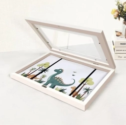 Conserva los recuerdos de la creatividad infantil con estilo y orden. El marco con capacidad de hasta 150 hojas A4 ofrece un rápido insertado y cambio de dibujos gracias al frontal abatible. El cierre magnético y las bandas elásticas mantienen los dibujos en perfecto estado sin arrugas.