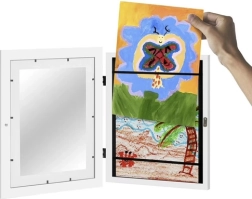 ¡Crea una pequeña galería en casa! Este práctico marco para dibujos infantiles en formato A4 alberga hasta 150 dibujos, cuenta con frontal abatible con cierre magnético para un intercambio fácil sin retirarlo de la pared y protege las obras con bandas elásticas. Gracias a la instalación sencilla sin taladrar, es ideal para habitaciones infantiles y salones.