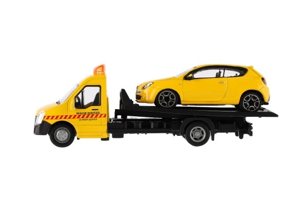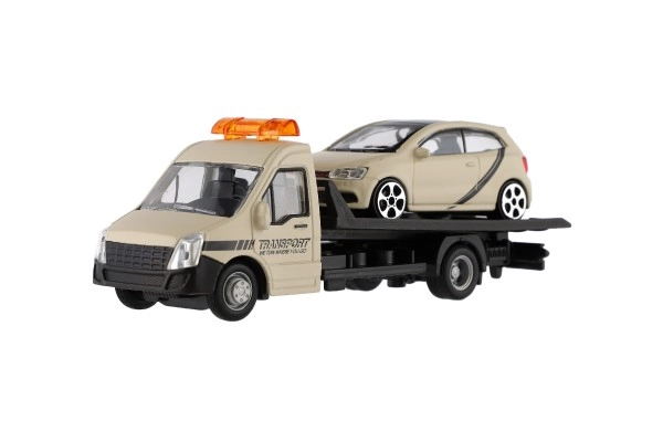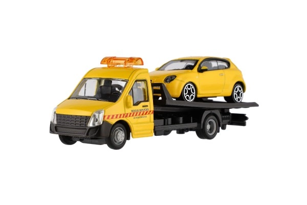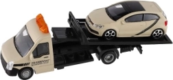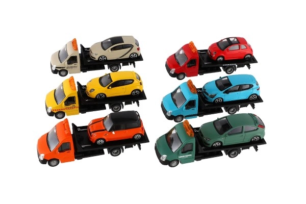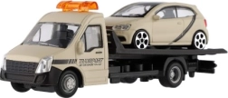 El modelo mide 21 cm e incluye una plataforma de remolque para cargar el coche incluido, ideal para escenas de tráfico urbano, rescates y transporte de vehículos. Gracias a su alta calidad, es una gran opción para coleccionistas y para niños a partir de 3 años.