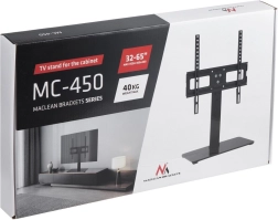 El soporte universal Maclean MC-450 está diseñado para su uso sobre un mueble de TV y es compatible con televisores de marcas como Sony, LG, Samsung, Philips y otras. Las dimensiones de pantalla son orientativas y adecuadas para TV que cumplan con los estándares VESA: 75x75, 100x100, 200x100, 200x200, 400x200, 300x300, 400x400 mm.
