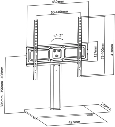Su elegante base de vidrio templado ofrece estabilidad y fiabilidad hasta 40 kg. Gracias a las almohadillas antideslizantes, protege la superficie contra arañazos. El soporte cuenta con 3 niveles de ajuste de altura (306/356/406 mm) para adaptar la altura de la pantalla a sus necesidades.