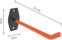 El juego de ganchos de pared MACLEAN MC-437 es la solución ideal para el almacenamiento seguro y ordenado de diversos objetos, como neumáticos y ruedas, escaleras, bicicletas, mangueras de jardín y otros equipos. La robusta estructura de acero ofrece seguridad y estabilidad con una carga de hasta 60 kg.