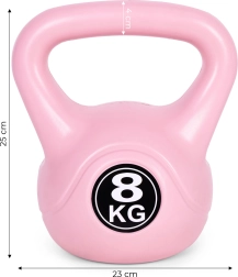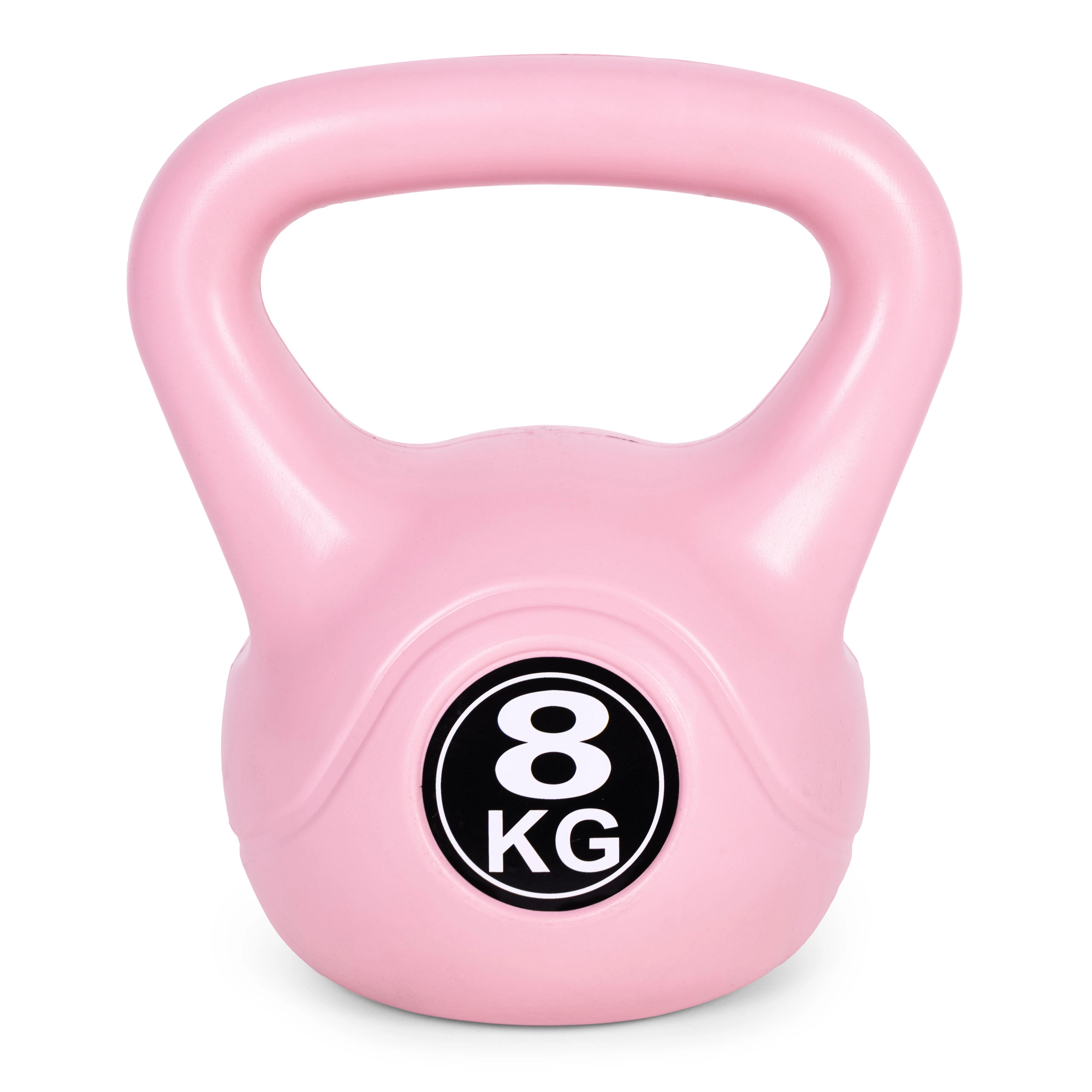 Kettlebell universal de color rosa con un peso de 8 kg de la marca MODERNHOME para un entrenamiento de fuerza, ejercicio funcional y rehabilitación eficaces. Gracias al asa ergonómica, el centro de gravedad desplazado y la base plana, ofrece un agarre seguro, mejor estabilidad y activación de los músculos profundos. La construcción resistente con cobertura de plástico y relleno de cemento es ideal tanto para principiantes como para avanzados.