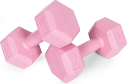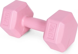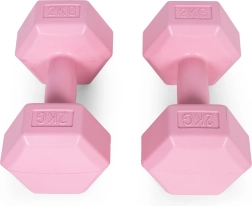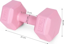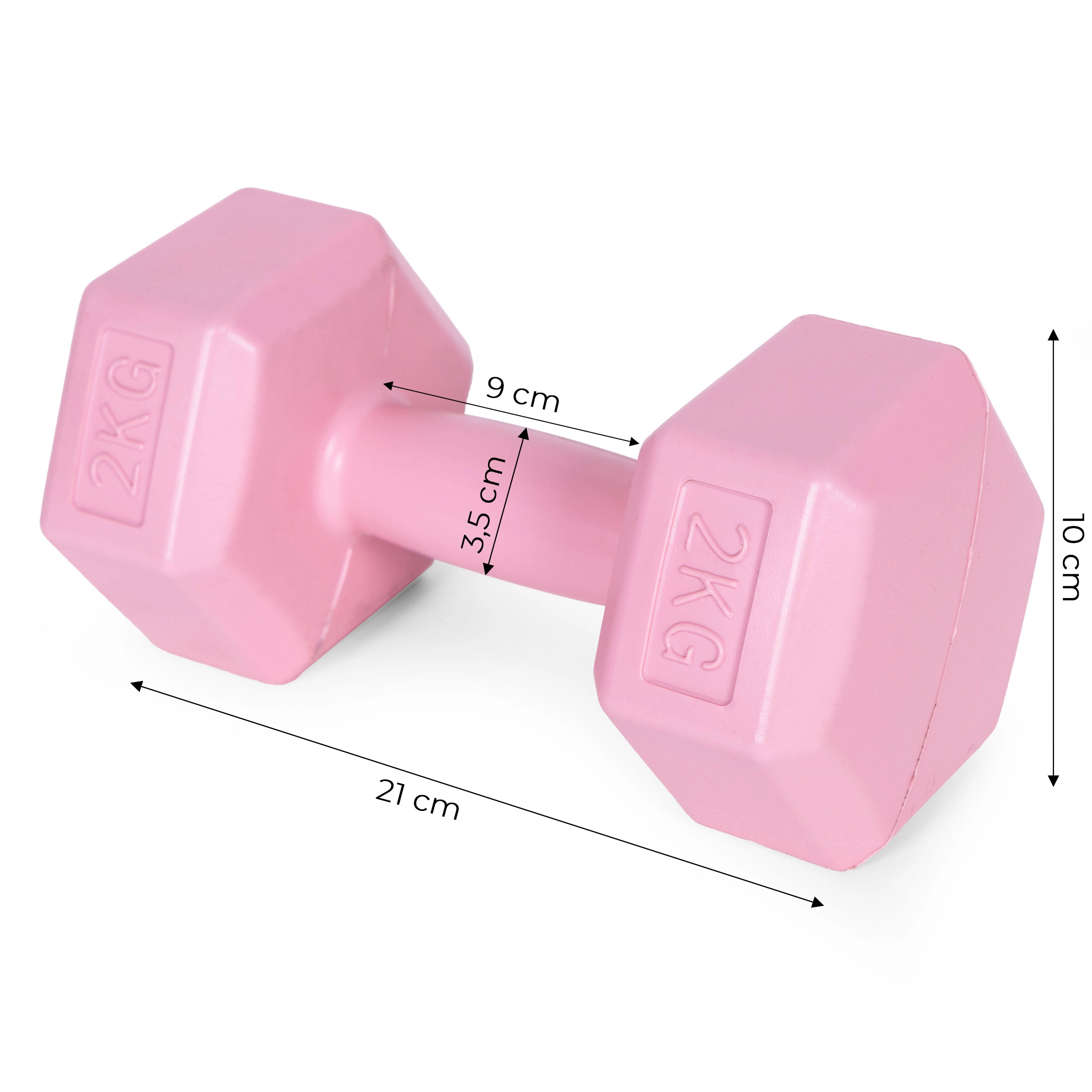 Entrena de forma efectiva en casa con las mancuernas rosas ModernHome. El set incluye 2 piezas de 2 kg, que favorecen el fortalecimiento integral de todo el cuerpo: brazos, espalda, abdomen, piernas y glúteos. Gracias a su forma hexagonal, las mancuernas son estables y seguras, por lo que puedes dejarlas en el suelo con tranquilidad durante circuitos o pausas.