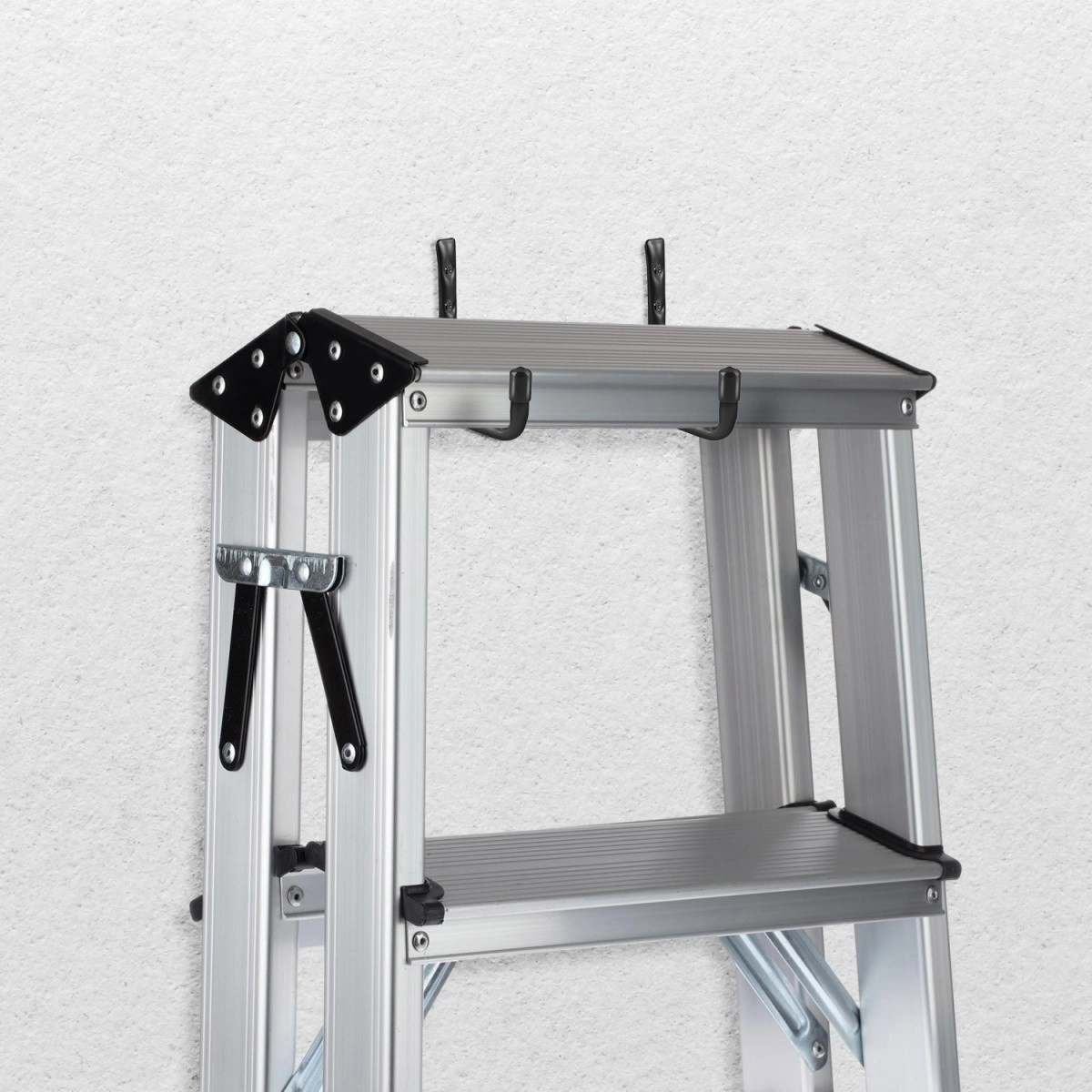 La instalación es rápida y se realiza en pocos minutos. Los ganchos son ideales para colgar neumáticos y bicicletas, pero también escaleras, equipamiento de jardín, mangueras o herramientas: una solución universal para aprovechar el espacio de forma eficiente.