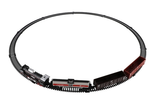 Este tren infantil a pilas ofrece diversión realista gracias a los efectos de luz y a los sonidos de la locomotora. Monte un sencillo circuito circular de 104 × 68 cm, acople los 3 vagones y disfrute de un recorrido fluido sobre vías de plástico resistentes.