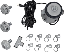 Incluye bomba, filtro de cartucho, 2 mangueras, 4 abrazaderas y cestas/coladores: todo lo necesario para comenzar.