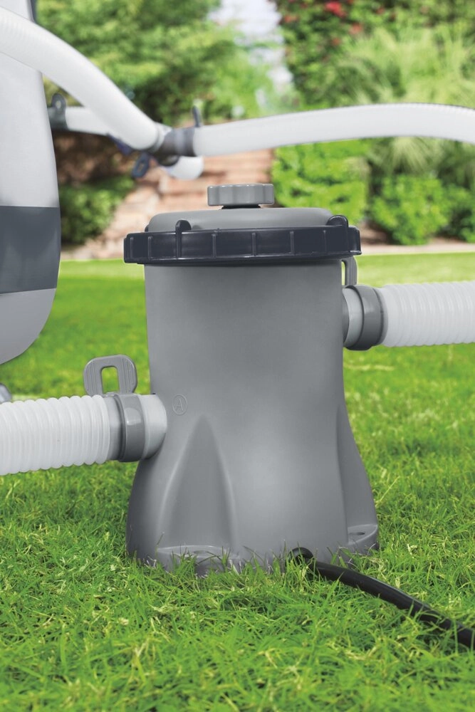 La bomba de filtración BESTWAY Flowclear 1249 l/h es una solución práctica para un agua limpia e higiénica durante toda la temporada de baño. Los dos circuitos de manguera incluidos garantizan la aspiración y el retorno del agua a través de un filtro de cartucho intercambiable (tipo I), que elimina de forma fiable las pequeñas impurezas.
