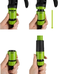 Desde el riego delicado de flores hasta el aclarado del coche: ajusta el chorro ideal en segundos gracias a la pistola ergonómica con múltiples modos.