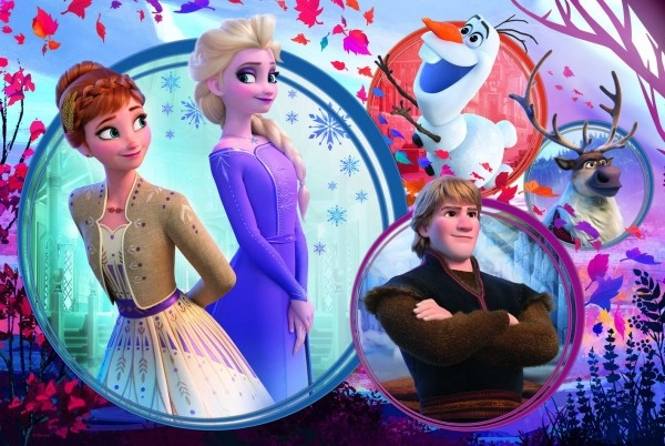 Descubre la alegría de montar puzzles con el motivo de la película Disney Frozen 2. El puzzle infantil Trefl con la imagen “Aventura de hermanas” ofrece una escena colorida con Elsa, Anna, Olaf, Kristoff y Sven. El troquelado preciso y la impresión de calidad garantizan que las piezas encajen a la perfección y que la imagen final sea vibrante y nítida.