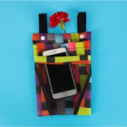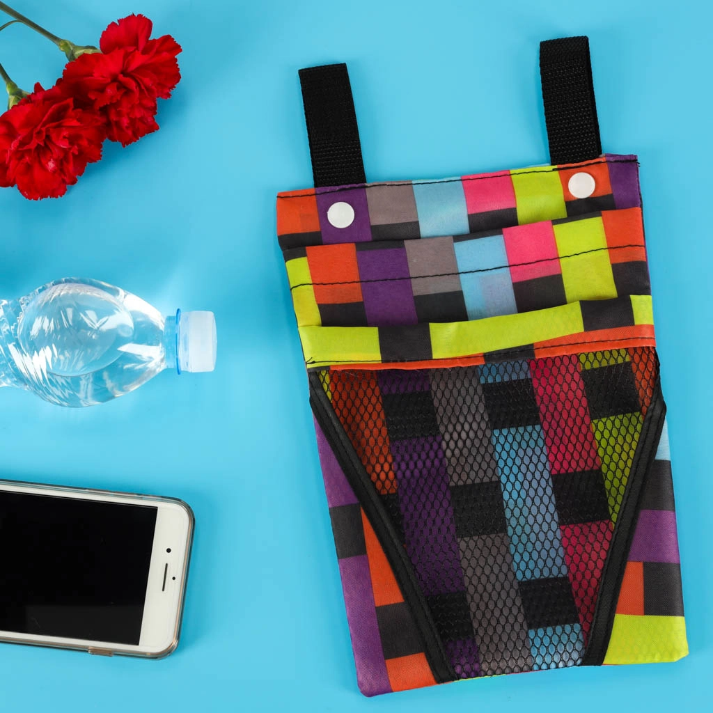 El bolsillo principal alberga el smartphone y lo esencial; el bolsillo delantero de malla mantiene a mano los pequeños objetos de uso frecuente.