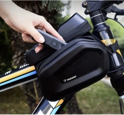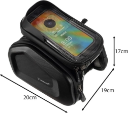 La bolsa es apta para teléfonos de hasta 7,2" y sus dimensiones son 20 x 19 x 17 cm. Fabricada con materiales duraderos que garantizan una larga vida útil y funcionalidad. Perfecta para quienes desean tener sus objetos importantes a mano en cada paseo en bici.