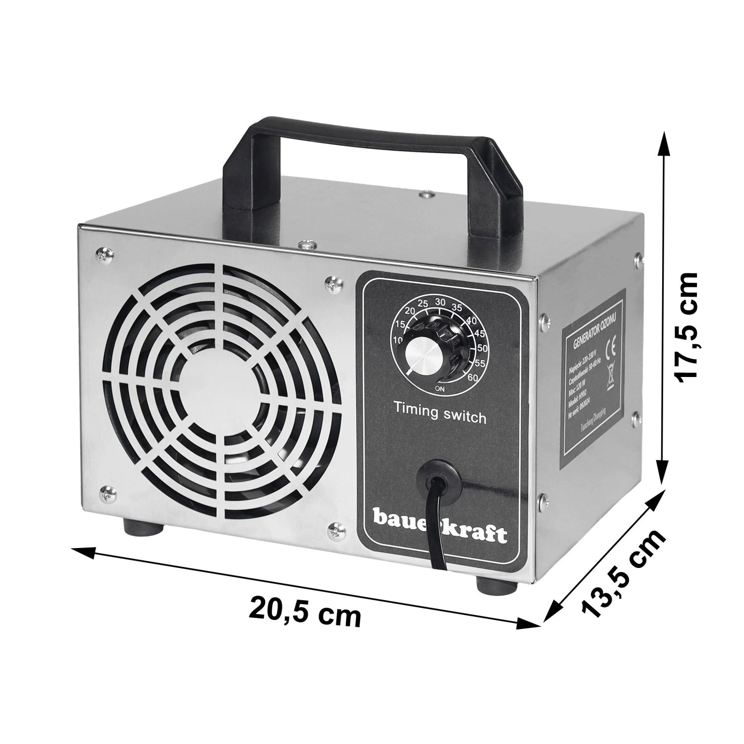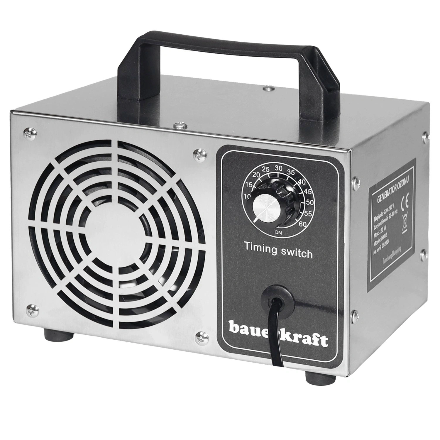 El manejo es muy simple: el temporizador integrado permite ajustar el tiempo de funcionamiento hasta 60 minutos según el tamaño del espacio y el grado de suciedad. Sus dimensiones compactas y el asa práctica facilitan el transporte y el almacenamiento, por lo que es adecuado para hogares, oficinas, hoteles, centros de salud e incluso para la ozonización del interior de automóviles.