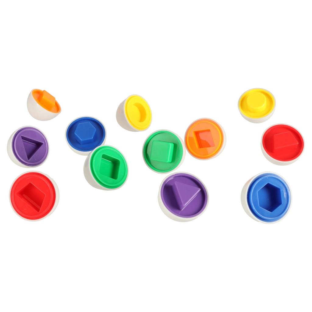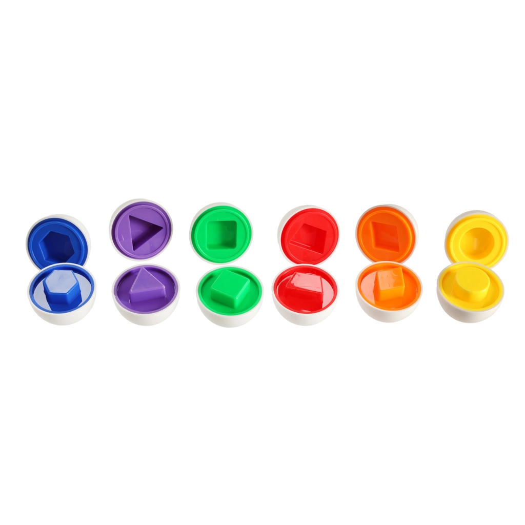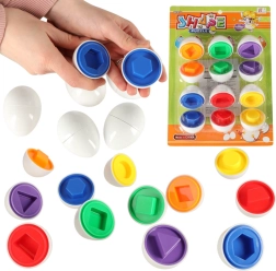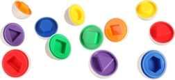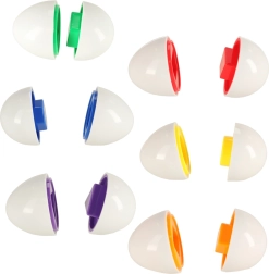 Los huevos de colores ayudan a los niños a desarrollar la coordinación mano-ojo encajando las mitades según sus formas y colores.