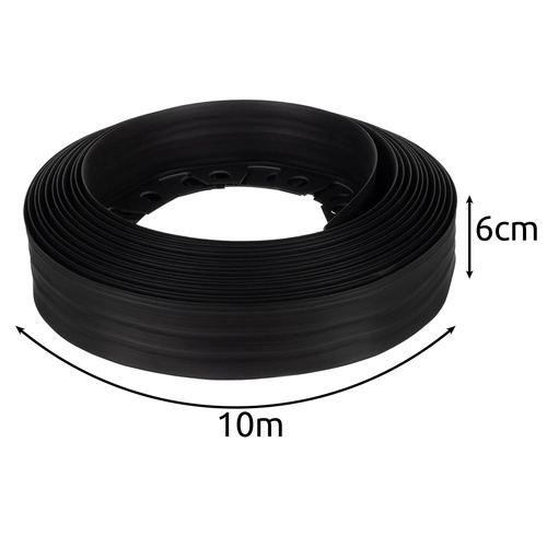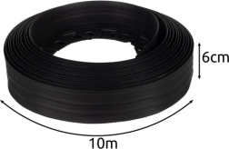 El producto está diseñado para adaptarse a cualquier jardín gracias a la posibilidad de ajustar la longitud con facilidad. La altura de 6 cm evita de forma eficaz el crecimiento de la hierba y las raíces, manteniendo el jardín cuidado y atractivo. Gracias a su elegante acabado en negro, el borde armoniza estéticamente con la vegetación circundante.