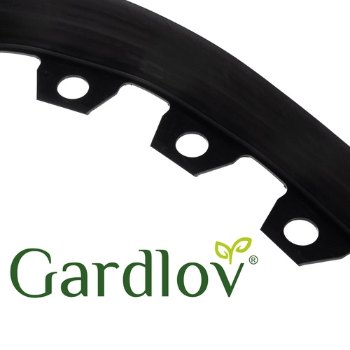 El borde de jardín Gardlov garantiza estabilidad incluso en suelos menos firmes gracias al set incluido, compuesto por 20 clavos resistentes. El borde está fabricado con un material resistente a heladas, lluvia y sol, lo que significa que no se agrieta ni se decolora incluso tras muchas temporadas. Gracias al sencillo montaje sin necesidad de herramientas especiales, estará listo para usar en diez minutos.