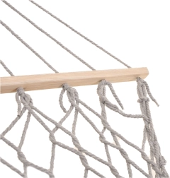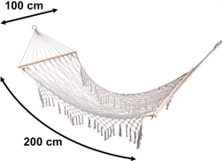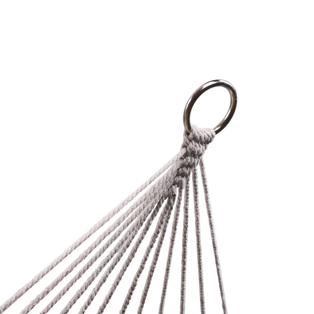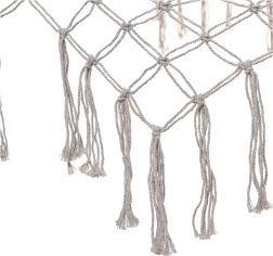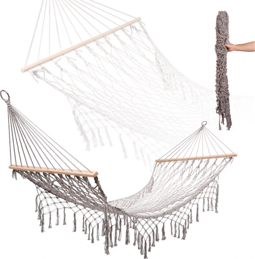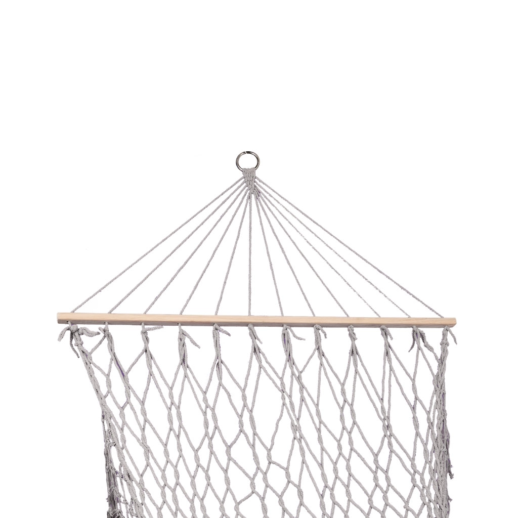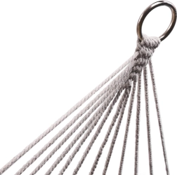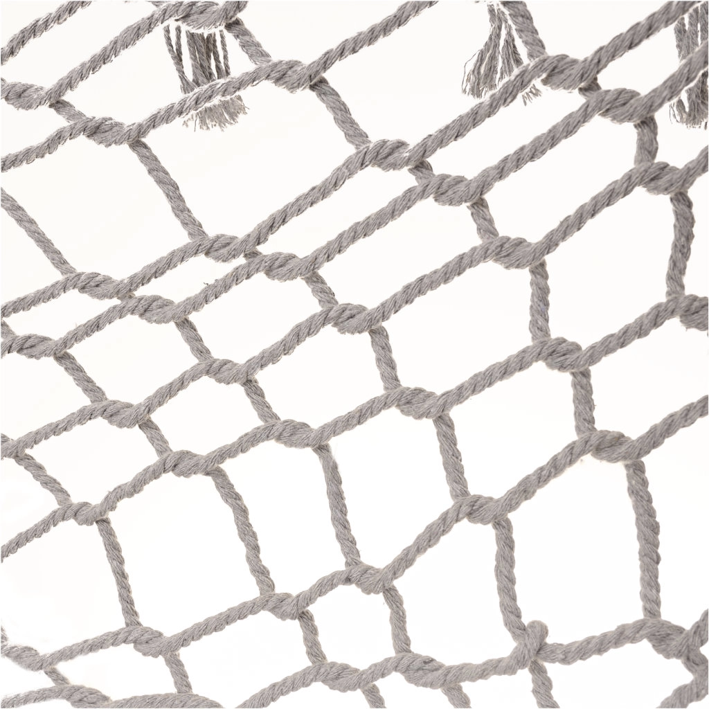 Fabricada con fibras de algodón de alta calidad (65%), que garantizan gran resistencia y una capacidad de carga de hasta 250 kg. Gracias a los elegantes flecos y al color gris, encaja a la perfección en cualquier entorno de jardín.