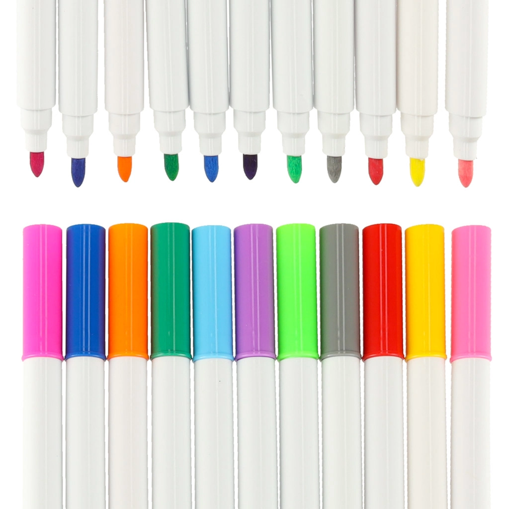 Incluye rotuladores blancos con tapones de colores para una fácil identificación, listos para usar de inmediato.