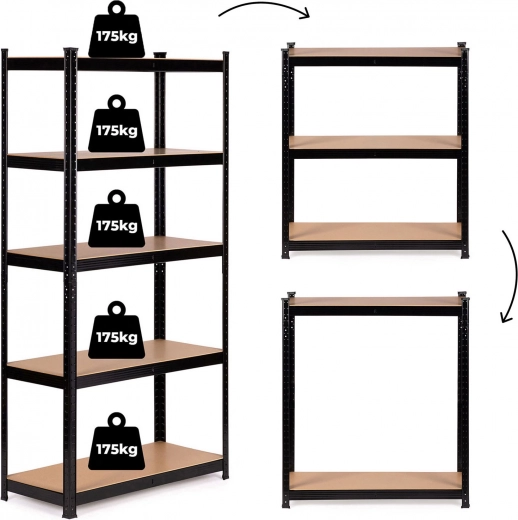 La estantería de almacenaje ModernHome es un complemento imprescindible para cualquier garaje, taller o sótano. Es ideal para almacenar herramientas, repuestos de automóvil o utensilios de jardinería. Gracias a la alta capacidad por balda de hasta 175 kg, organizarás tu espacio fácilmente y mantendrás el orden incluso con objetos pesados.