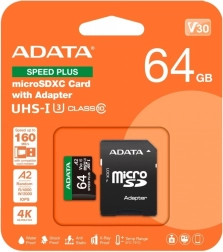 La tarjeta de memoria microSD Speed Plus 64GB es ideal para una variedad de dispositivos, incluidos drones, cámaras deportivas y fotografía 360°. Permite transferencias de alta velocidad de hasta 180 MB/s*, lo que la convierte en una ayudante perfecta para quienes desean capturar cada momento. *Las velocidades por encima del nivel UHS-I 104 MB/s requieren un lector de tarjetas especial y pueden variar según el sistema y el estado del dispositivo.
