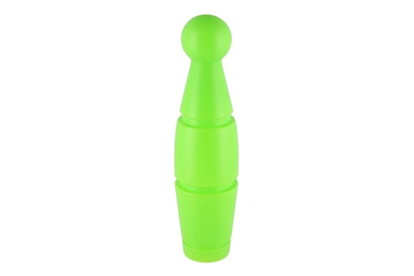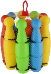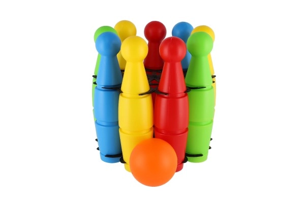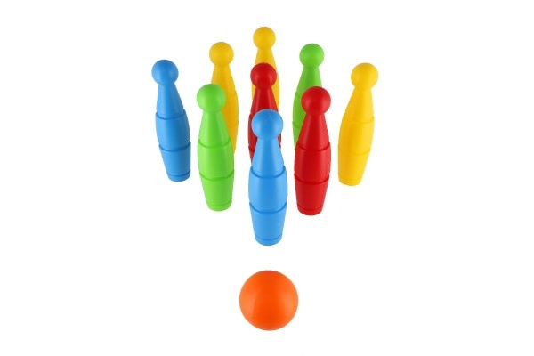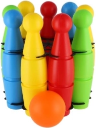 Un divertido set para pequeños jugadores de bolos que incluye 9 bolos de plástico de colores y una bola de plástico. Un juguete ligero y seguro para interior y jardín que ayuda a desarrollar la motricidad fina, la concentración, la precisión y el fair play. Los bolos tienen una altura de 24 cm y todo el set viene envasado en una práctica malla.