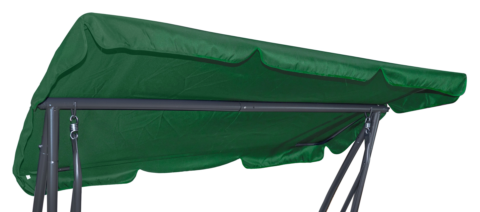 El techo en color verde uniforme aporta a tu columpio un aspecto fresco y elegante. Además de protección, el techo cuenta con un volante decorativo que añade estilo.