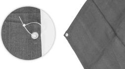 Instalación simple y rápida gracias al juego de montaje incluido y a los ojales de aluminio en todo el perímetro.
