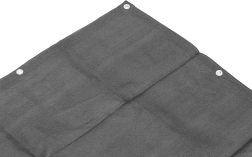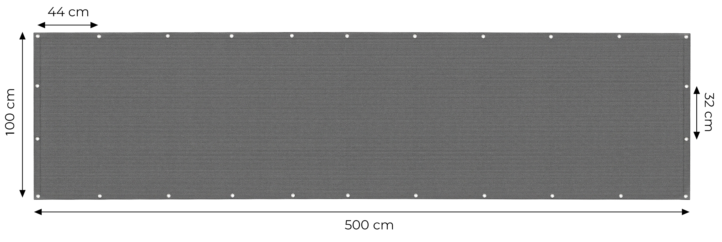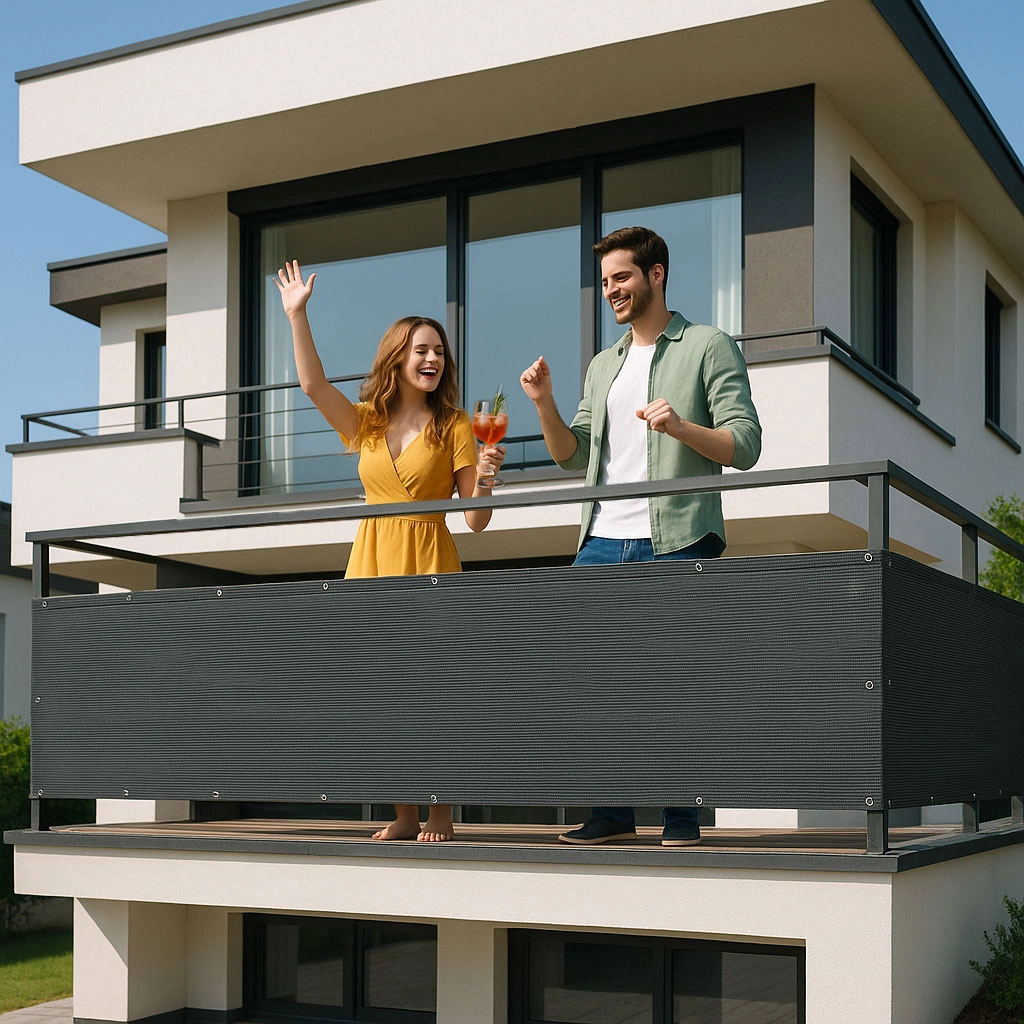 El paquete incluye ojales de aluminio colocados aproximadamente cada 40 cm a lo largo de los bordes, lo que garantiza una fijación estable y duradera a la barandilla. Gracias a su resistencia a la corrosión, se mantienen funcionales y estéticos incluso tras un uso prolongado en exteriores. El juego de montaje incluye 26 bridas y 2 cuerdas de ocho metros para una instalación rápida en ambos lados de la barandilla. Su construcción flexible permite una adaptación sencilla a distintos balcones y terrazas.