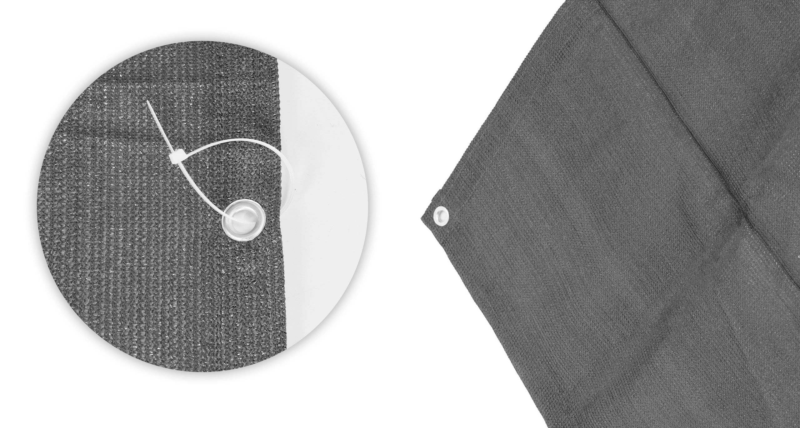 Fabricada en HDPE resistente, altamente resistente a los daños mecánicos y a los rayos UV, mantiene colores vivos incluso tras una larga exposición al sol. El material no absorbe humedad, por lo que es resistente al moho y la deformación y a las cambiantes condiciones meteorológicas. Esta malla ligera pero firme proporciona sombra efectiva y permite una buena circulación del aire.