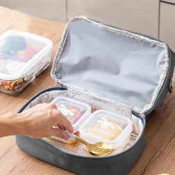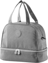El compartimento inferior principal de esta bolsa ofrece gran capacidad y acomoda fácilmente fiambreras, fruta, bebidas, botellas térmicas o tazas. El bolsillo superior está diseñado para objetos pequeños, como barritas, yogures, pañuelos o cubiertos, lo que garantiza un contenido ordenado y de fácil acceso. La correa de hombro ajustable permite llevar la bolsa cómodamente y puede desmontarse con facilidad.