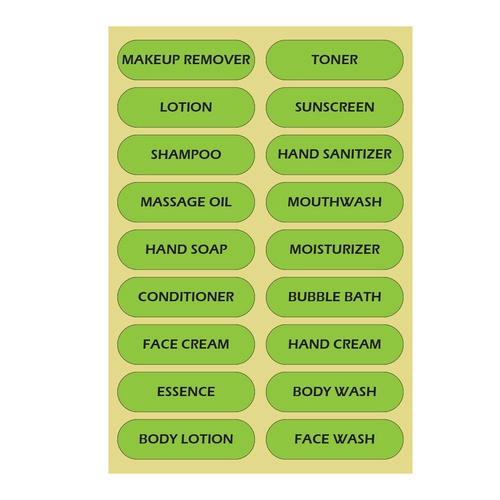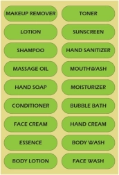 - Etiquetas con nombres de cosméticos