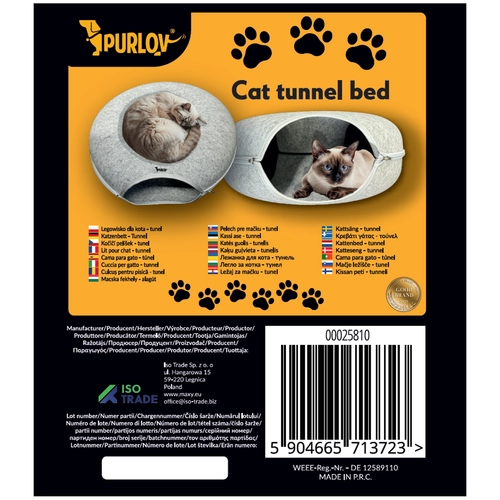 El túnel para gatos PURLOV es la elección ideal para cualquier dueño de gato que quiera ofrecer a su mimado un lugar cómodo y acogedor. Su diseño ergonómico y el suave material de fieltro harán que tu gato se sienta como en su propio reino.