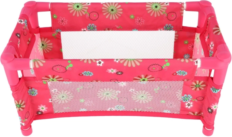 La construcción ligera y resistente de tubos con paneles textiles soporta el juego diario. La cuna se entrega sin colchón (sin base rígida), lo que la convierte en un complemento seguro y flexible para la habitación infantil. El alegre motivo floral en tonos rosados encantará a cualquier pequeña mamá.