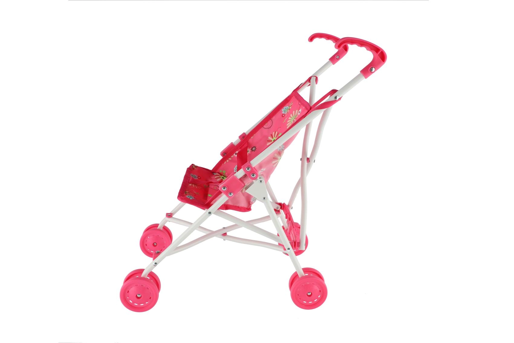 Este cochecito rosa para muñecas con funda de flores es práctico, ligero y diseñado para el juego diario. Los niños apreciarán las empuñaduras cómodas, el movimiento suave de las cuatro ruedas dobles y el cinturón de seguridad que mantiene a la muñeca en su lugar. La estructura es de metal y la funda de tejido resistente: fácil de mantener y duradera.