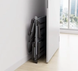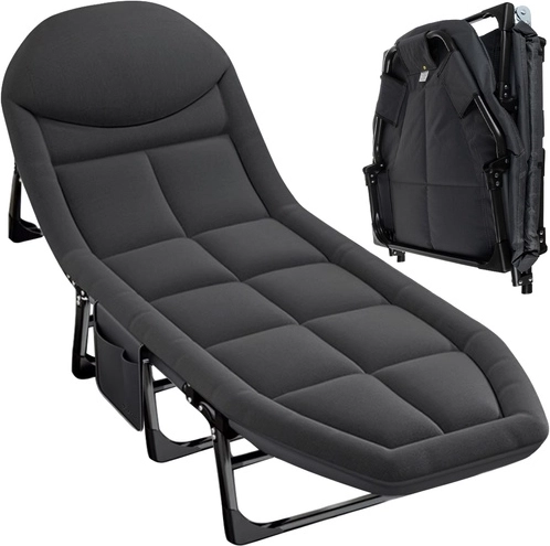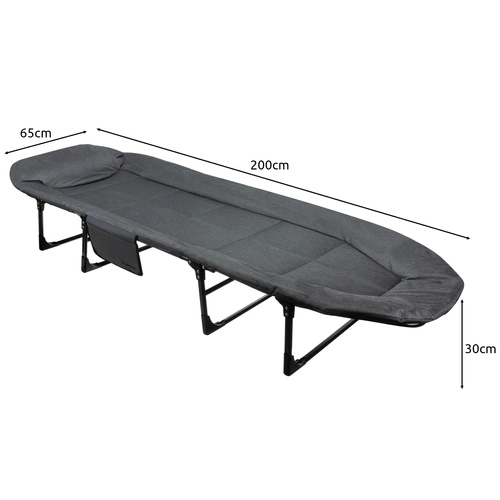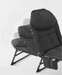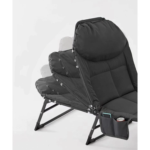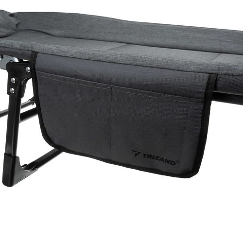 Una vez plegada, la cama es compacta y fácil de transportar, lo que facilita su traslado y almacenamiento. Un práctico bolsillo lateral garantiza que sus objetos personales, como el teléfono o un libro, estén siempre a mano.