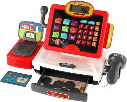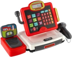 El set incluye todo lo que un pequeño vendedor necesita: lector con luz LED y sonido para escanear productos, billetes y monedas de juguete para pagar, ranura para tarjeta de crédito para transacciones sin efectivo, calculadora funcional para sumar y una balanza para frutas y verduras. El embalaje práctico facilita el almacenamiento y el transporte.