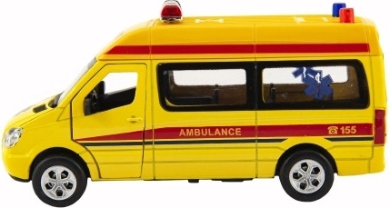 Esta ambulancia detalladamente elaborada combina un resistente chasis metálico con accesorios de plástico duraderos y es ideal para el juego creativo. Gracias al mecanismo de retroceso se desplaza sin necesidad de control remoto, mientras que las puertas delanteras y traseras abatibles aumentan la autenticidad y la interactividad.