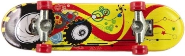 Cada skateboard tiene gráficos llamativos y ruedas coloridas que destacan a primera vista. Se entrega en diferentes combinaciones de colores.