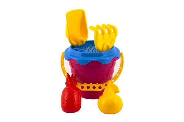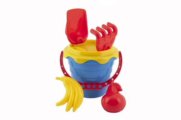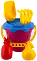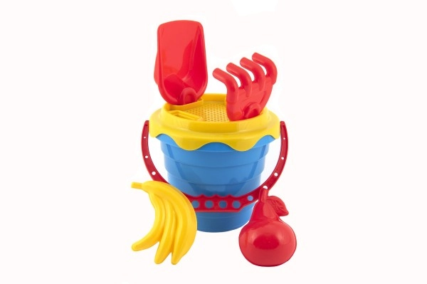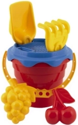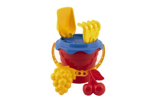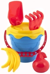 Incluye un práctico cubo de 12 cm, complementado con un tamiz para separar las partículas más grandes de la arena. El set también contiene una pala, un rastrillo y dos moldes para dar forma, que permitirán a tu hijo crear construcciones de arena originales.