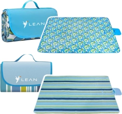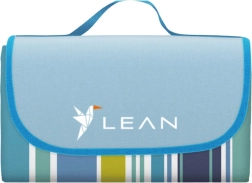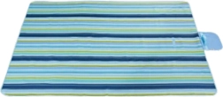 La manta está disponible en dos estampados atractivos: flores azules y rayas azul‑verdes. La capa inferior es impermeable, ideal para el parque, la playa y festivales. El asa de transporte integrada y el velcro garantizan un plegado rápido y un transporte cómodo.