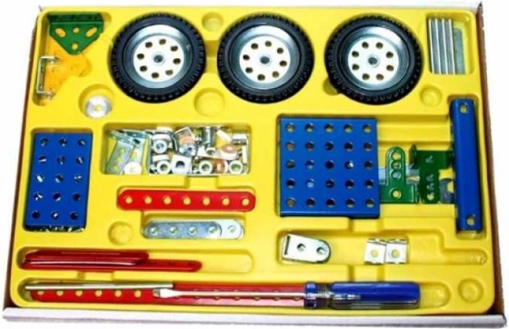 Descubre el legendario juego de construcción checo MERKUR, que combina diversión y aprendizaje. El set con 174 piezas metálicas resistentes, ruedas, tornillos y tuercas ofrece la posibilidad de construir una moto para terreno, una moto con sidecar y un divertido triciclo. Gracias al manual claro, incluso los constructores principiantes podrán montar los modelos.