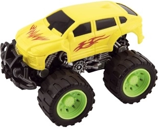 Divertido coche todoterreno de inercia con ruedas grandes y parachoques resistente listo para cualquier aventura. Su tamaño compacto de 13 cm, fabricación de plástico resistente y manejo sencillo lo convierten en una gran elección para niños a partir de 3 años. Disponible en varias combinaciones de colores.