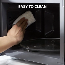 Descubre un microondas con diseño moderno, no solo estéticamente agradable, sino también muy funcional. Con una capacidad que admite un plato giratorio de 255 mm, es ideal para hogares de cualquier tamaño.